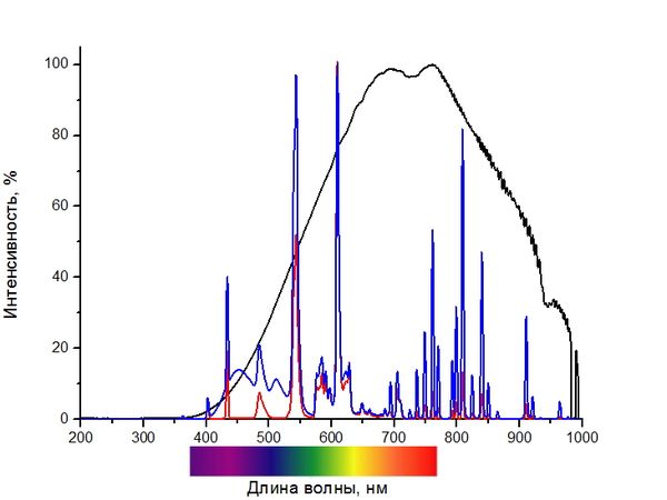 Как видно, спектр ламп накаливания естественно-непрерывен, в отличие от дискретных, с резкими пиками графиков КЛЛ. Он ближе всего к природному солнечному свету, хотя и смещен в красно-желтую область (это, кстати, хорошо соответствует вечернему освещению на закате — вот почему свет ЛН непроизвольно расслабляет). Именно к Солнцу в ходе эволюции адаптировалось все живое, в том числе — и человеческий глаз. Если бы мы располагали материалом, выдерживающим нагрев до 5800 К (температура фотосферы), проблема искусственного освещения была бы решена раз и навсегда. Увы, таких материалов на Земле нет и не предвидится, а применяемый в ЛН вольфрам плавится при 3690 К, не дотягивая до идеала более двух тысяч градусов. Так что тепловые источники света, лучшие, чем ЛН, нам недоступны. Что же дают новые технологии?